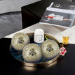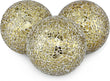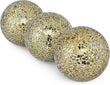 Add a touch of elegance to your home with these Gold Mosaic Decorative Orbs. Each 4-inch ball features a three-layer design with a resin core, cement wrap, and shiny glass mosaic pieces that sparkle beautifully under the light.
